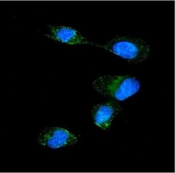 - Immunofluorescent staining of FFPE human U-2 OS cells with KPNA1 antibody (green) and DAPI nuclear stain (blue). HIER: steam section in pH6 citrate buffer for 20 min.