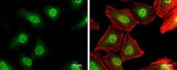 - Immunocytochemistry-Immunofluorescence analysis of p27 Kip1 was performed in HeLa cells fixed in 4% paraformaldehyde at RT for 15 min. Green: p27 Kip1 Polyclonal Antibody (Product # PA5 27188) diluted at 1:500. Red: phalloidin, a cytoskeleton marker. Scale bar = 10 µm.