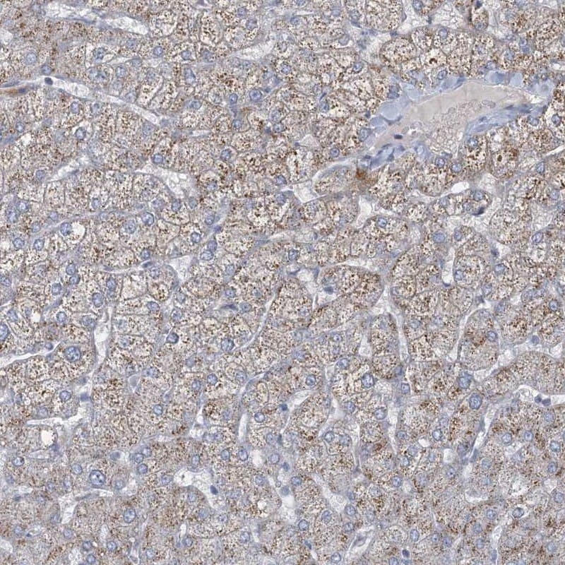 - Immunohistochemical analysis of CCDC14 in human liver using CCDC14 Polyclonal Antibody (Product # PA5-57211) shows moderate cytoplasmic positivity in hepatocytes.