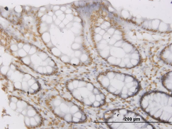 - Immunoperoxidase of monoclonal antibody to ROPN1 on formalin-fixed paraffin-embedded human colon. [antibody concentration 1.5 ug/ml]