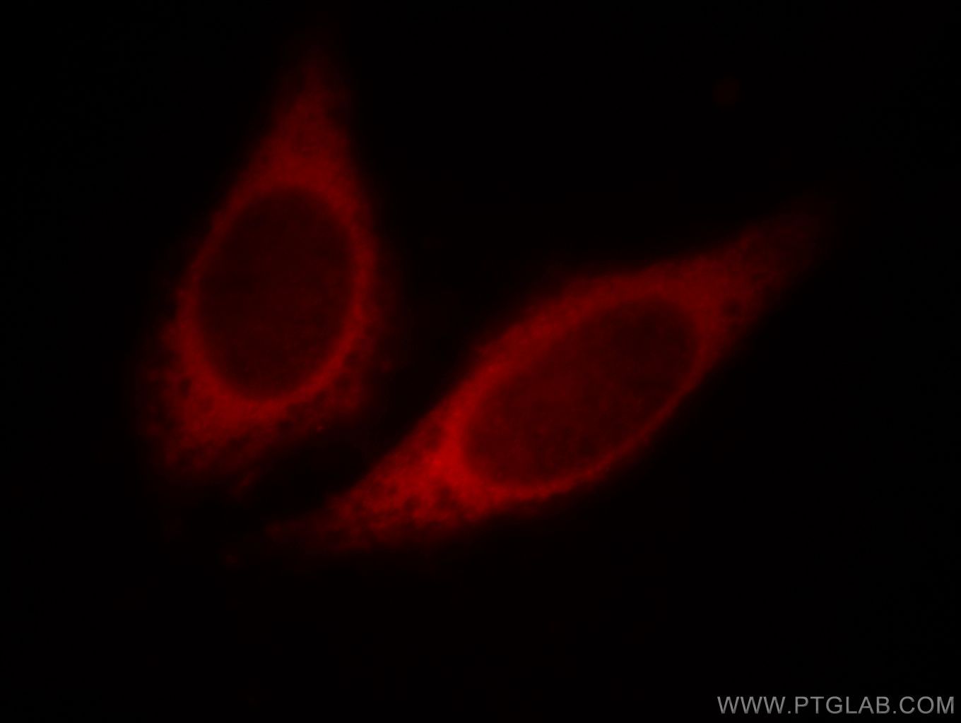 - Immunofluorescent analysis of HepG2 cells, using HBS1L antibody 10359-1-AP at 1:25 dilution and Rhodamine-labeled goat anti-rabbit IgG (red).