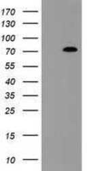 - HEK293T cells were transfected with the pCMV6-ENTRY control (Left lane) or pCMV6-ENTRY NUB1 (RC208098, Right lane) cDNA for 48 hrs and lysed. Equivalent amounts of cell lysates (5 µg per lane) were separated by SDS-PAGE and immunoblotted with anti-NUB1. Positive lysates LY414176 (100 µg) and LC414176 (20 µg) can be purchased separately from OriGene.