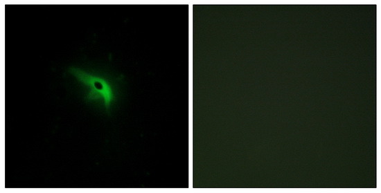 - Immunofluorescence analysis of A549 cells, using TPIP1 antibody. The picture on the right is treated with the synthesized peptide.