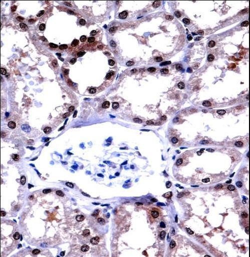 - APLP2 Antibody immunohistochemistry of formalin-fixed and paraffin-embedded human kidney tissue followed by peroxidase-conjugated secondary antibody and DAB staining.