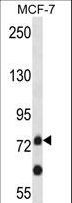 - APLP2 Antibody western blot of MCF-7 cell line lysates (35 ug/lane). The APLP2 antibody detected the APLP2 protein (arrow).