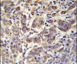 - Immunohistochemistry analysis in formalin-fixed, paraffin-embedded human cervix carcinoma using an ANKRD57 polyclonal antibody (Product # PA5-25701), followed by HRP-conjugated secondary antibody and DAB staining.