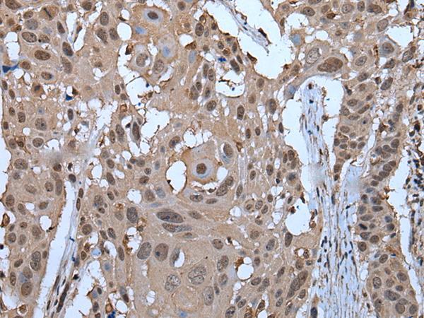 - Immunohistochemistry of paraffin-embedded Human esophagus cancer tissue using ZNF787 Polyclonal Antibody at dilution of 1:45(×200)