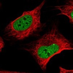 - Immunofluorescent staining of human cell line U-2 OS with ZNF470 polyclonal antibody (Cat # PAB22236) at 1-4 ug/mL dilution shows positivity in nucleus but not nucleoli.
