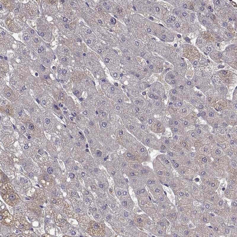 - Immunohistochemical staining of Tomosyn in human liver using Tomosyn Polyclonal Antibody (Product # PA5-65579) shows low expression as expected.