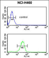 - IL1F8 Antibody (N-term) (GTX80917) flow cytometric analysis of NCI-H460 cells (bottom histogram) compared to a negative control cell (top histogram).FITC-conjμgated goat-anti-rabbit secondary antibodies were used for the analysis.