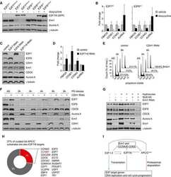 - Figure 3 Mechanisms supporting APC/C Cdh1 activity under ER stress conditions. (A) HeLa cells were treated with DMSO, 0.5 ug/ml of TM alone, or 0.5 ug/ml of TM plus 5 uM of MG-132 for 16 h. Immunoprecipitates of endogenous Cdc27 were immunoblotted for endogenous Cdh1. Immunoprecipitation using IgG served as negative control. ** indicates Cdh1-specific top band; *indicates non-specific bottom band. (B) HeLa cells were treated with DMSO or 1 ug/ml of TM for 16 h. CDK2 or CDK1 antibodies were used to immunoprecipitate endogenous CDK2 or CDK1 complexes, respectively. Immunoprecipitates were then used in in vitro kinase assays using histone H1 as substrate. Left , autoradiography of 32 P-histone H1 phosphorylated by CDK2 complexes. Coomassie stains input of histone H1 in the reactions. Intensity of the autoradioactive bands were quantified by Image J, normalized to histone H1 input, and presented as arbitrary units (A.U.). Immunoblot shows comparable levels of endogenous CDK2 and the indicated proteins before and after TM treatment. Right , autoradiography of 32 P-histone H1 phosphorylated by CDK1 complexes, analyzed as indicated for CDK2. (C) Left , total cell lysates from HeLa cells treated with DMSO or 1 ug/ml of TM for 16 h were immunoblotted for the indicated endogenous proteins. Right , quantification of endogenous Emi1 mRNA levels in HeLa cells treated with DMSO or 1 ug/ml of TM for 16 h, measured by SYBR-green qRT-PCR.