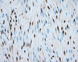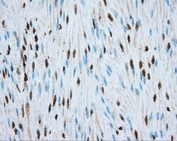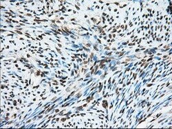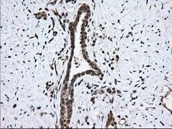 - Immunohistochemical staining of paraffin-embedded human endometrium tissue within the normal limits using anti-MTRF1L mouse monoclonal antibody. (Heat-induced epitope retrieval by 10mM citric buffer, pH6.0, 100°C for 10min, TA501067, Dilution 1:50)