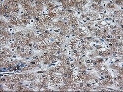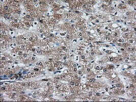 - Immunohistochemical staining of paraffin-embedded human liver tissue within the normal limits using anti-MTRF1L mouse monoclonal antibody. (Heat-induced epitope retrieval by 10mM citric buffer, pH6.0, 100°C for 10min, TA501067, Dilution 1:50)