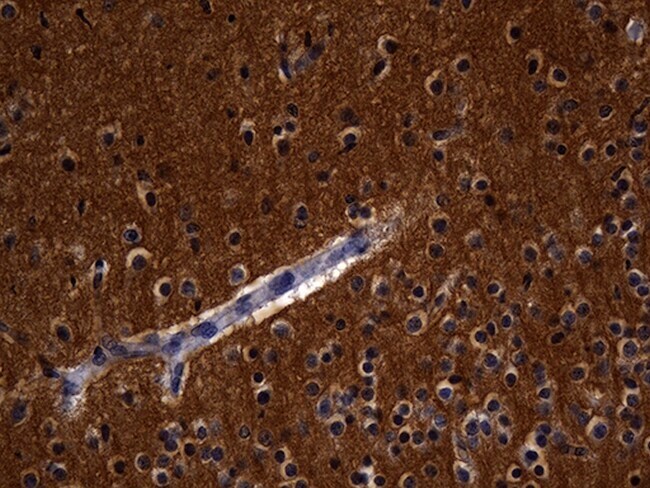 - Immunohistochemical staining of paraffin-embedded human adult brain tissue within the normal limits using anti-RGS17 mouse monoclonal antibody. (Heat-induced epitope retrieval by 1mM EDTA in 10mM Tris buffer (pH8.5) at 120°C for 3 min, TA811296)(1:500)