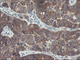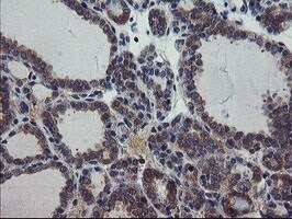 - Immunohistochemical staining of paraffin-embedded Carcinoma of Human thyroid tissue using anti-VBP1 mouse monoclonal antibody. (Heat-induced epitope retrieval by 10mM citric buffer, pH6.0, 100°C for 10min, TA504894)