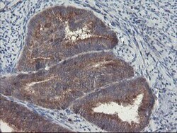 - Immunohistochemical staining of paraffin-embedded Adenocarcinoma of Human endometrium tissue using anti-VBP1 mouse monoclonal antibody. (Heat-induced epitope retrieval by 10mM citric buffer, pH6.0, 100°C for 10min, TA504894)