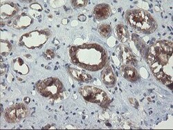- Immunohistochemical staining of paraffin-embedded human Kidney tissue within the normal limits using anti-VBP1 mouse monoclonal antibody. (Heat-induced epitope retrieval by 10mM citric buffer, pH6.0, 100°C for 10min, TA504894)