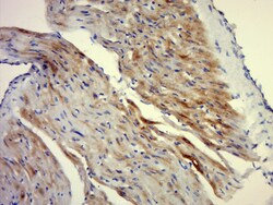 - Paraformaldehyde-fixed, paraffin embedded rat heart; Antigen retrieval by boiling in sodium citrate buffer (pH6.0) for 15min; Block endogenous peroxidase by 3% hydrogen peroxide for 20 minutes; Blocking buffer (normal goat serum) at 37°C for 30min; Antibody incubation with MRas Polyclonal Antibody, Unconjugated (bs-1882R) at 1:400 overnight at 4°C, followed by a conjugated secondary for 20 minutes and DAB staining.
