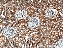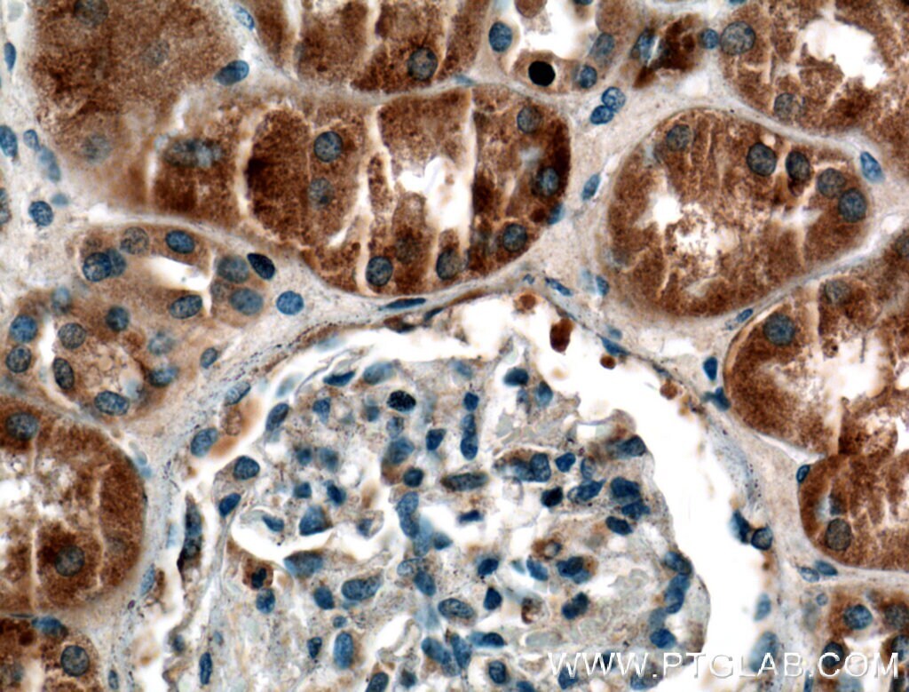 - Immunohistochemistry of paraffin-embedded human kidney tissue slide using 22076-1-AP ( SYTL3 Antibody) at dilution of 1:200 (under 40x lens).