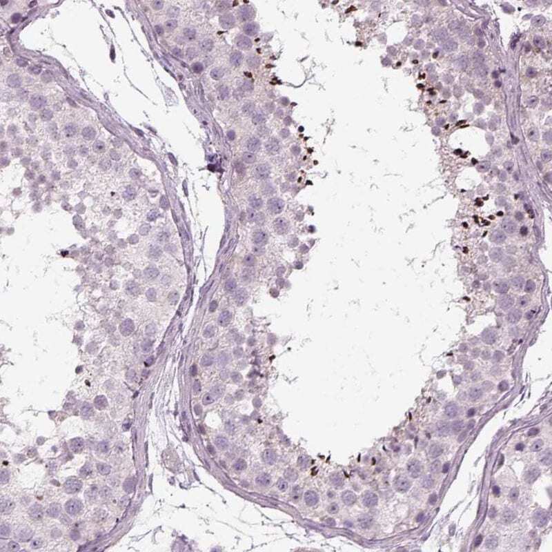 - Immunohistochemical staining of LRRIQ3 in human testis using a LRRIQ3 Polyclonal Antibody (Product # PA5-56562) shows strong cytoplasmic positivity in spermatozoa.