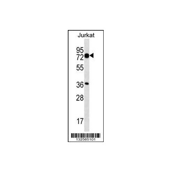 - PLS1 Antibody (C-term) (Cat. #OAAB09446) western blot analysis in Jurkat cell line lysates (35µg/lane).This demonstrates the PLS1 antibody detected the PLS1 protein (arrow).