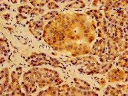 - Immunohistochemical analysis of HS2ST1 in paraffin embedded human pancreatic tissue using a HS2ST1 polyclonal antibody (Product # PA5-97842) at a dilution of 1:100.
