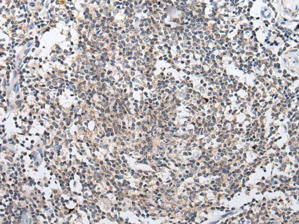 - Immunohistochemical analysis of ARL5A in paraffin-embedded Human tonsil tissue using (left) ARL5A Polyclonal Antibody (Product # PA5-67615) at a 1:20 dilution and (right) is treated with synthetic peptide. (Original magnification: x200).