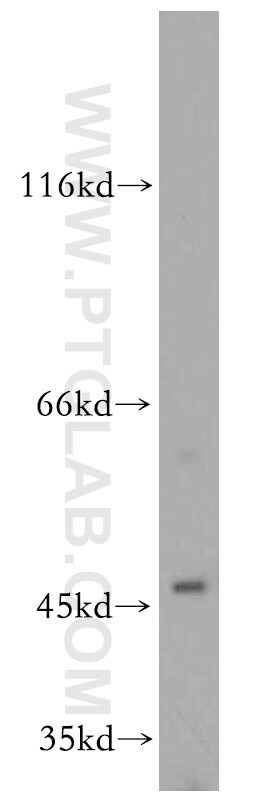 - HEK-293 cells were subjected to SDS PAGE followed by western blot with 14669-1-AP (SLC25A24 antibody) at dilution of 1:3000 incubated at room temperature for 1.5 hours.