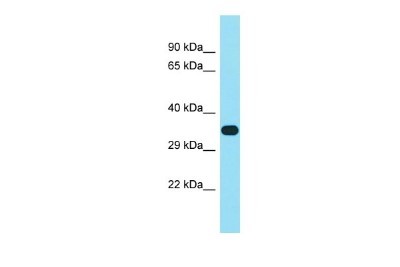 - Western Blot: FAM102B Antibody [NBP2-83032] - Host: Rabbit. Target Name: FAM102B. Sample Type: 293T Whole Cell lysates. Antibody Dilution: 1.0ug/ml