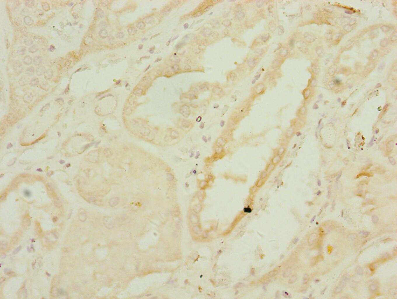 - Immunohistochemical analysis of DNAJC19 in paraffin embedded human kidney tissue using a DNAJC19 polyclonal antibody (Product # PA5-98770) at a dilution of 1:100.