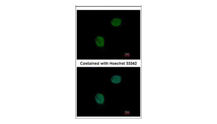 - Immunofluorescence analysis of paraformaldehyde-fixed HeLa, using GNAT2(OAGA01076) antibody at 1:500 dilution.
