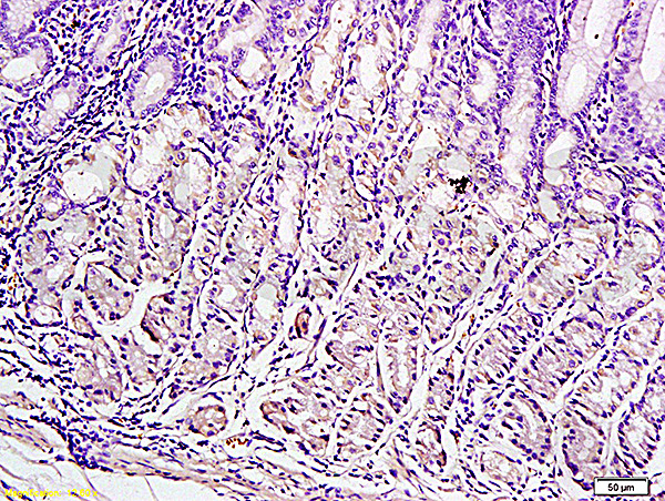 - Formalin-fixed and paraffin embedded human gastric tissue labeled with Anti-Leptin Polyclonal Antibody (bs-0409R), Unconjugated at 1:300, followed by conjugation to the secondary antibody and DAB staining