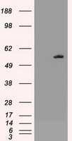 - HEK293T cells were transfected with the pCMV6-ENTRY control (Left lane) or pCMV6-ENTRY AKT3 (RC221051, Right lane) cDNA for 48 hrs and lysed. Equivalent amounts of cell lysates (5 µg per lane) were separated by SDS-PAGE and immunoblotted with anti-AKT3. Positive lysates LY401675 (100 µg) and LC401675 (20 µg) can be purchased separately from OriGene.