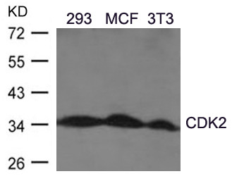 - Western blot analysis of extracts from 293, MCF, 3T3 cells using CDK2(Ab-160) Antibody #21111.