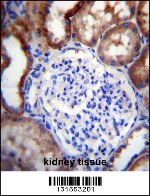 - LINGO4 Antibody (C-term) (Cat. #OAAB09076)immunohistochemistry analysis in formalin fixed and paraffin embedded human kidney tissue followed by peroxidase conjugation of the secondary antibody and DAB staining.This data demonstrates the use of LINGO4 Antibody (C-term) for immunohistochemistry. Clinical relevance has not been evaluated.