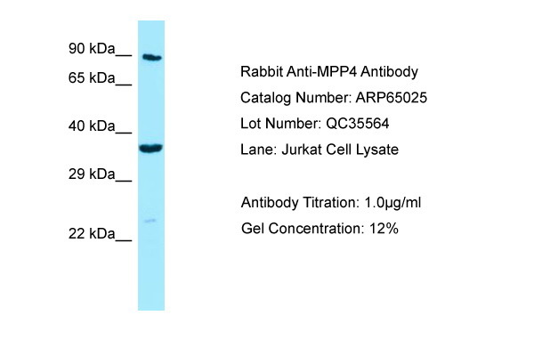 - WB Suggested Anti-MPP4 Antibody Titration: 1.0 ug/ml, Positive Control: Jurkat Whole Cell