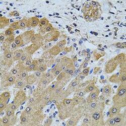 - Immunohistochemistry of paraffin-embedded human liver injury using FOXO3 antibodyat dilution of 1:100 (40x lens).