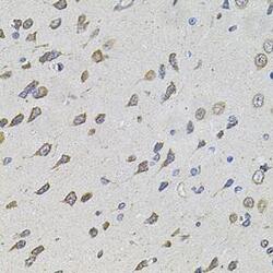 - Immunohistochemistry of paraffin-embedded rat brain using FOXO3 antibodyat dilution of 1:100 (40x lens).