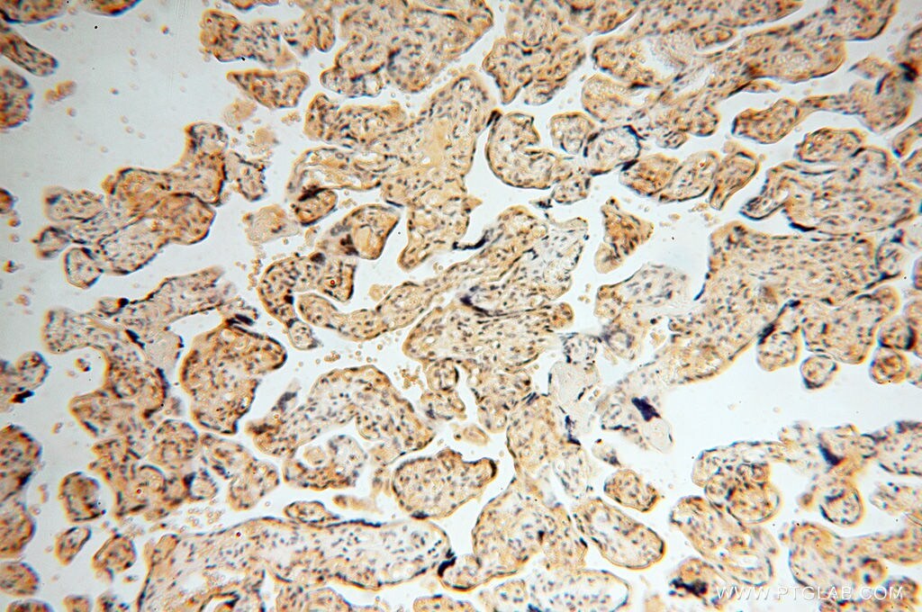 - Immunohistochemistry of paraffin-embedded human placenta using 12332-1-AP (IDH1 antibody) at dilution of 1:50 (under 10x lens).
