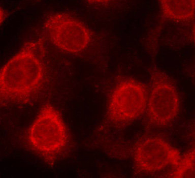 - Immunofluorescence staining of methanol-fixed MCF cells using Phospho-EIF4E-S209 antibody.