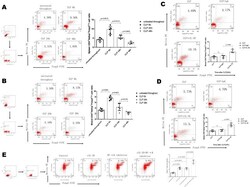 - Fig. 6 C57BL/5 mice were assigned to the untreated group, CLP (6 h) group, CLP (24 h) group, CLP (48 h) group, CLP + IgG group and CLP + IL-35 group. Each group had n = 5, the indicators of each mouse were repeatedly tested 3 times, and the best data were selected as the representative data. (A, B) T cells were isolated from mouse spleens or peripheral blood. The frequency of Foxp3+Helios + Treg cells was subsequently determined by flow cytometry, and the results reflect five mice per time point. Foxp3+Helios + Treg cells gradually decreased in the blood and spleen with time in CLP-induced ARDS. (C, D) Treatment with recombinant IL-35 after CLP challenge restored Foxp3+Helios + Treg cells in the blood and spleens. (E) Naive CD4 + T lymphocytes induce the differentiation of CD4 + Foxp3+ Helios + T cells (Tregs) via the IL-35/NF-kappaB signalling pathway. The comparison between the two groups was performed by one-way ANOVA followed by LSD multiple comparisons test. Fig. 6