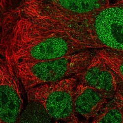 - Immunofluorecent analysis of APOA1BP in human cell line CACO-2 using APOA1BP Polyclonal Antibody (Product # PA5-60502). Staining shows localization to nucleoplasm.