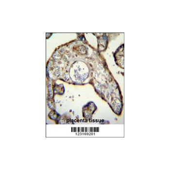 - MNDA Antibody (N-term) (Cat. #OAAB07488)immunohistochemistry analysis in formalin fixed and paraffin embedded human placenta tissue followed by peroxidase conjugation of the secondary antibody and DAB staining.This data demonstrates the use of MNDA Antibody (N-term) for immunohistochemistry. Clinical relevance has not been evaluated.