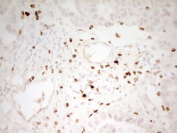 - Immunohistochemical staining of paraffin-embedded Human tonsil within the normal limits using anti-MNDA mouse monoclonal antibody. (Heat-induced epitope retrieval by 1 mM EDTA in 10mM Tris, pH8.5, 120C for 3min, TA807178)