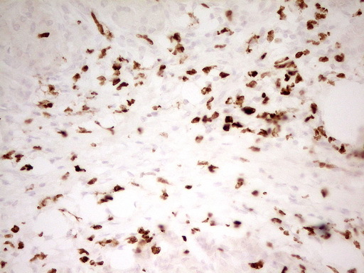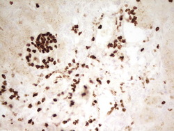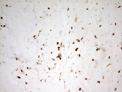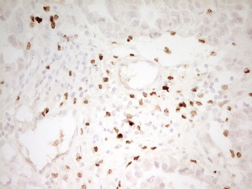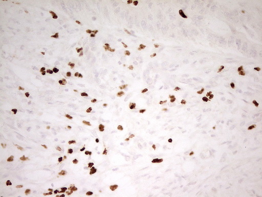 - IHC of paraffin-embedded Human endometrium tissue using anti-MNDA mouse monoclonal antibody. (Heat-induced epitope retrieval by 1 mM EDTA in 10mM Tris, pH8.5, 120°C for 3min).