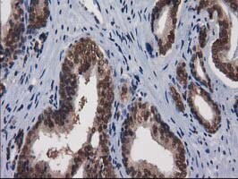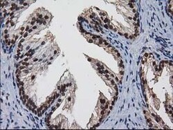 - Immunohistochemical staining of paraffin-embedded Carcinoma of Human prostate tissue using anti-NHEJ1 mouse monoclonal antibody. (Heat-induced epitope retrieval by 10mM citric buffer, pH6.0, 100°C for 10min, TA502007)