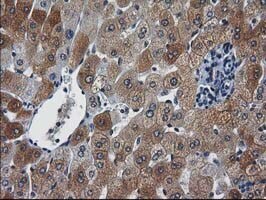 - Immunohistochemical staining of paraffin-embedded human liver tissue within the normal limits using anti-NHEJ1 mouse monoclonal antibody. (Heat-induced epitope retrieval by 10mM citric buffer, pH6.0, 100°C for 10min, TA502007)