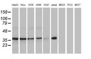 - Western blot analysis of extracts (35 µg) from 9 different cell lines by using anti-NHEJ1 monoclonal antibody.