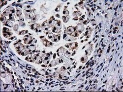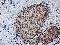 - Immunohistochemical staining of paraffin-embedded Adenocarcinoma of Human breast tissue using anti-NHEJ1 mouse monoclonal antibody. (Heat-induced epitope retrieval by 10mM citric buffer, pH6.0, 100°C for 10min, TA502007)