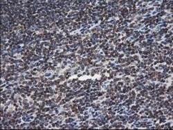 - Immunohistochemical staining of paraffin-embedded human lymphoma tissue using anti-NHEJ1 mouse monoclonal antibody. (Heat-induced epitope retrieval by 10mM citric buffer, pH6.0, 100°C for 10min, TA502007)